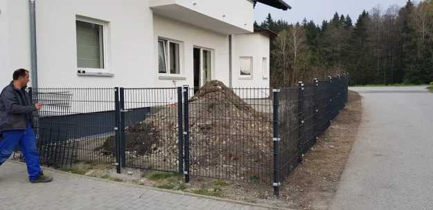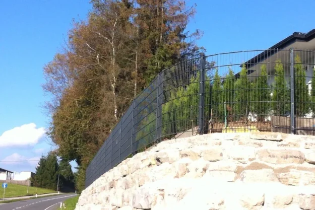 Für dieses Projekt haben wir eine langlebige und stilvolle Lösung umgesetzt – ein hochwertiger Doppelstabmattenzaun, montiert auf einer bestehenden Natursteinmauer. Die Kombination aus massivem Stein und pulverbeschichtetem Metall verleiht dem Grundstück nicht nur Sicherheit, sondern auch eine moderne und elegante Optik. Dank präziser Planung und fachgerechter Montage passt sich der Zaun perfekt dem Gelände an.…